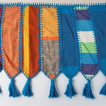Rede em tecido plano. Varanda patchwork feita com crochê, caréus e mamucabas feitos a mão.